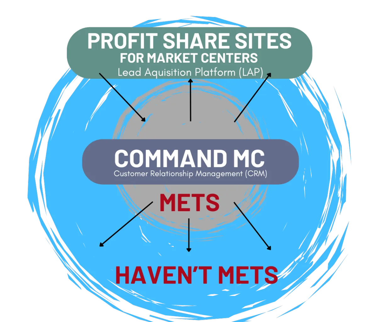 Think of Profit Share Sites for Market Centers as your Lead Acquisition System for your non-Mets while Command MC acts as your CRM and home for all your met recruits.